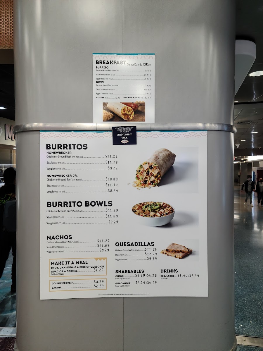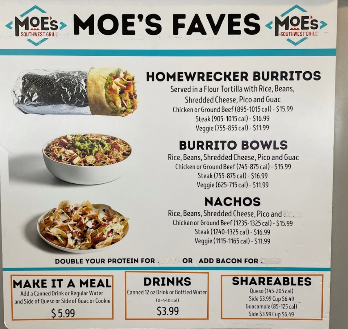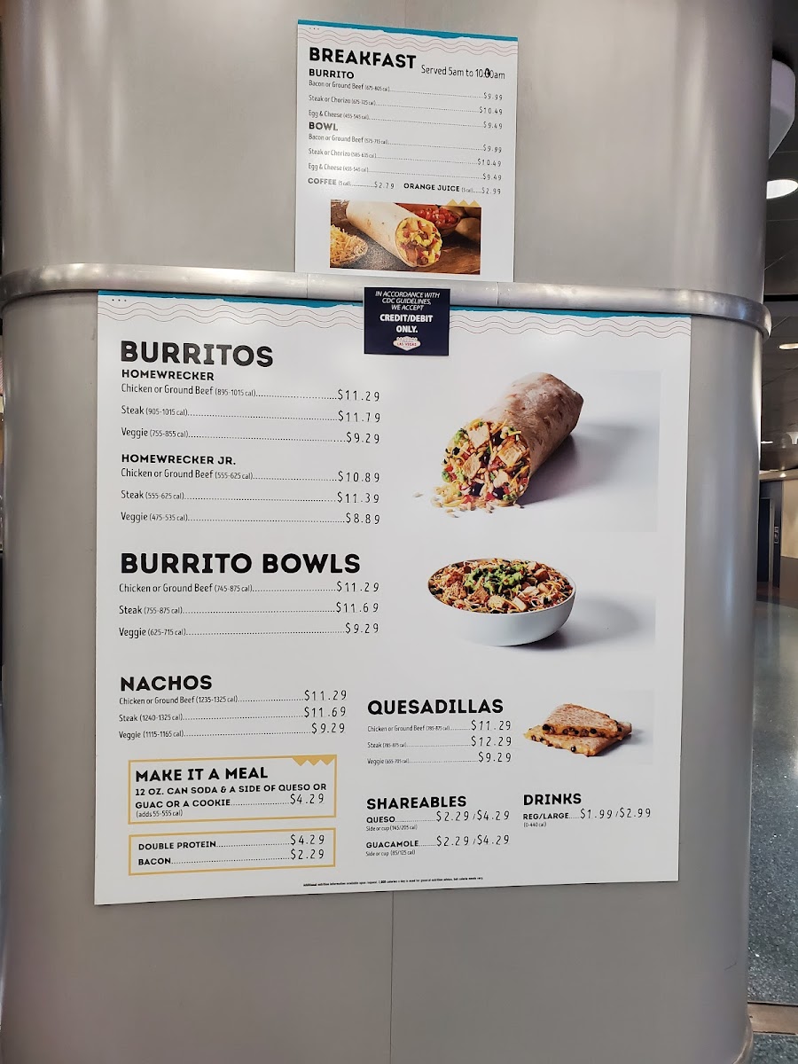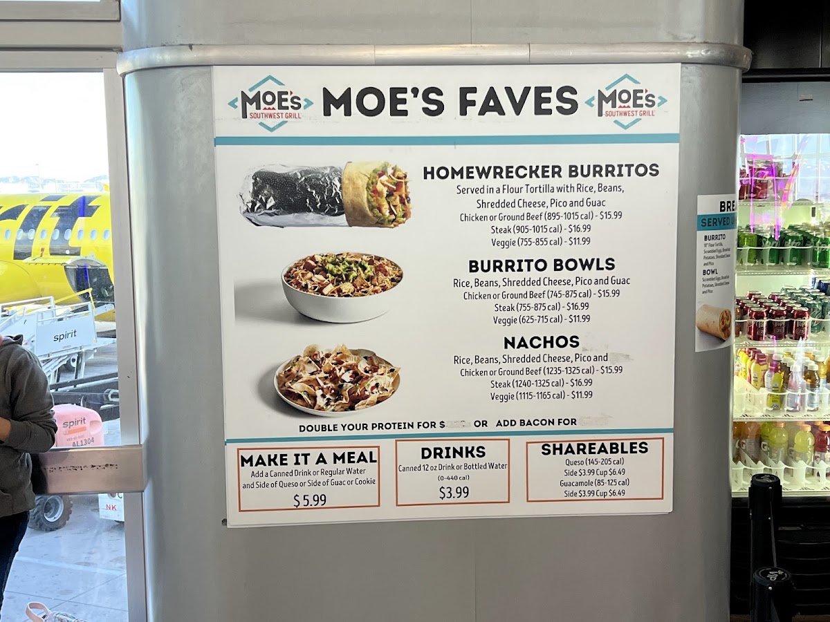 The menu’s focus on customization lets diners tailor their meals, ensuring each bite suits individual taste preferences. Whether you're grabbing a quick bite before a flight or relaxing during a layover, Moe’s offers not only convenience but authentic taste and generous portions. Customer praises highlight the fresh ingredients, clean preparation, and the warm, welcoming vibe of the staff, making it an ideal spot for a flavorful, stress-relieving meal.